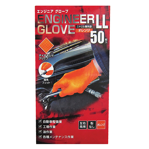 ニトリル薄手袋 エンジニアグローブ オレンジ LL 1箱(50枚)
