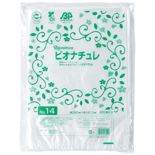 HDバイオマス規格袋ビオナチュレ半透明 14号 280×410×厚み0.007mm 1パック(400枚) 【5-8営業日遅延】