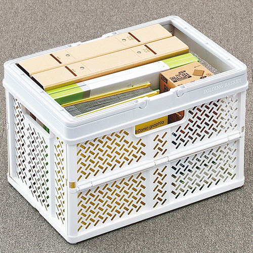 書類やファイルをタテに入れられる折りたたみバスケット。