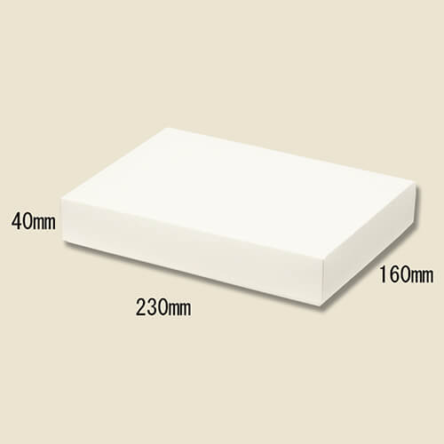 ギフト包装によく使用される形式の箱です。内・外ともにホワイト仕様ですが、表面にはストライプ状のエンボス加工が施された特殊紙を使用。シンプルながら高級かつ上品な仕上がりとなっています。ギフトセットやプレゼントのラッピングにいかがでしょうか。