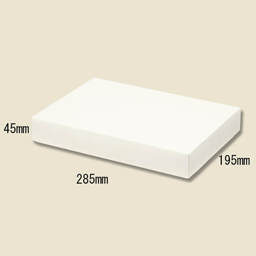 ギフト包装によく使用される形式の箱です。内・外ともにホワイト仕様ですが、表面にはストライプ状のエンボス加工が施された特殊紙を使用。シンプルながら高級かつ上品な仕上がりとなっています。ギフトセットやプレゼントのラッピングにいかがでしょうか。