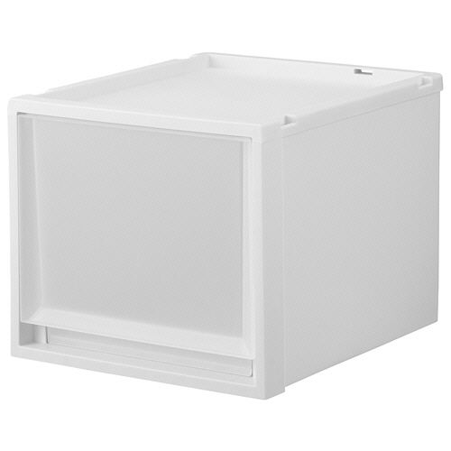 ●幅35cm、高さ30cmのホワイトクリアのケースです。スチールラックでの使用やフリーデスクの共通引出にもおすすめです。