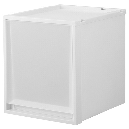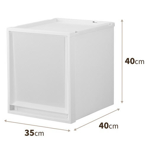 ●幅35cm、高さ40cmのホワイトクリアのケースです。スチールラックでの使用やフリーデスクの共通引出にもおすすめです。