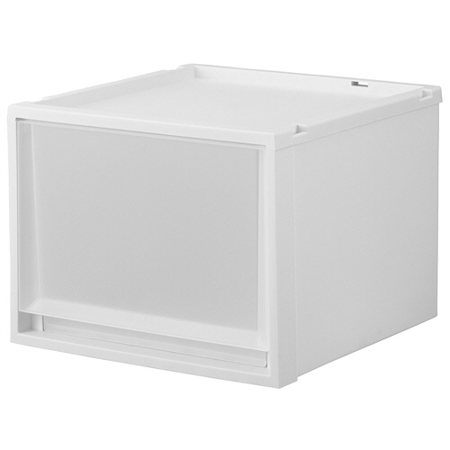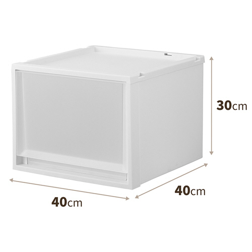 ●幅40cm、高さ30cmのホワイトクリアのケースです。スチールラックでの使用やフリーデスクの共通引出にもおすすめです。