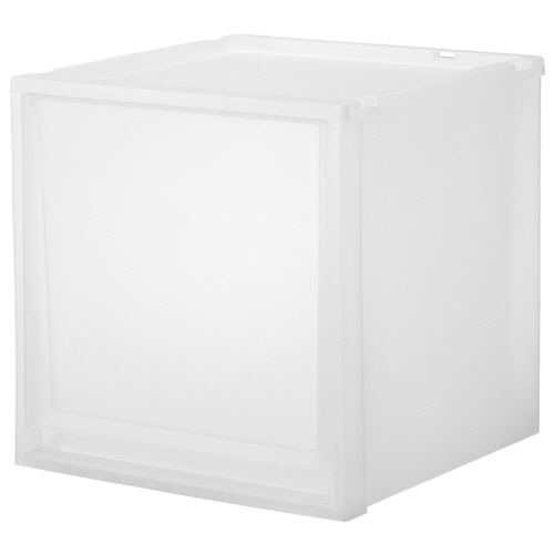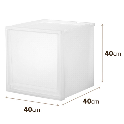 ●幅40cm、高さ40cmのクリアのケースです。スチールラックでの使用やフリーデスクの共通引出にもおすすめです。