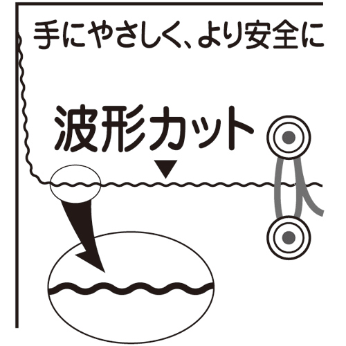 ●手にやさしく、より安全に。オリジナルフラップ波形カット(実用新案登録)