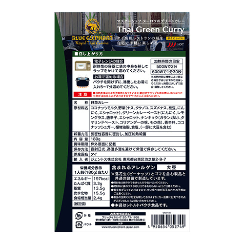 マスターシェフ・ヌーロウのグリーンカレー 180g 1食 【東京23区ほか:約1週間遅延】