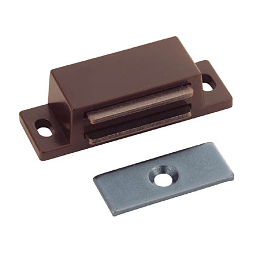 ●本体:ABS樹脂●受け金具:スチール●マグネット:フェライト磁石(等方性)●色:茶●全長(mm):50●吸着力(N):35●受板用推奨皿ねじ:2.7mm●本体取付穴寸法:3.5×6.2mm長穴