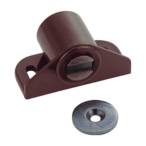 ●本体:樹脂(PA)●マグネット:フェライト磁石(異方性)●受け金具:スチール●色:茶●全長(mm):37●吸着力(N):30●受板用推奨皿ねじ:2.4mm●本体取付穴寸法:3.2×8mm長穴