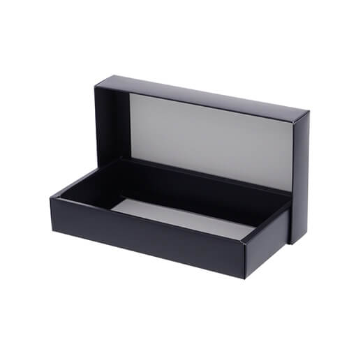 パッケージやギフト包装によく使われる形式の箱。表面がマット調のダークブルーとなっており、とてもシックな仕上がりです。洋服やアパレル雑貨などのパッケージ・ギフトラッピングにいかがでしょうか。