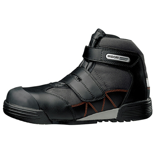 建設現場作業者の要望に基づいて作られたプロ仕様の作業靴です。くるぶしやアキレス腱を保護するハイカットタイプです。