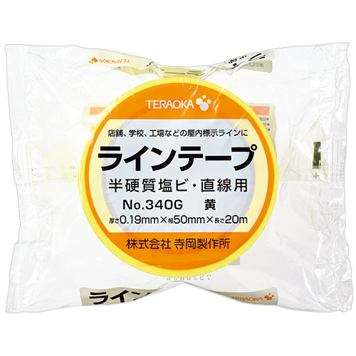 ●鮮やかな発色で耐久性に優れ、粘着剤が残りづらいライン表示用テープ。50mm×20m、色は黄です。
