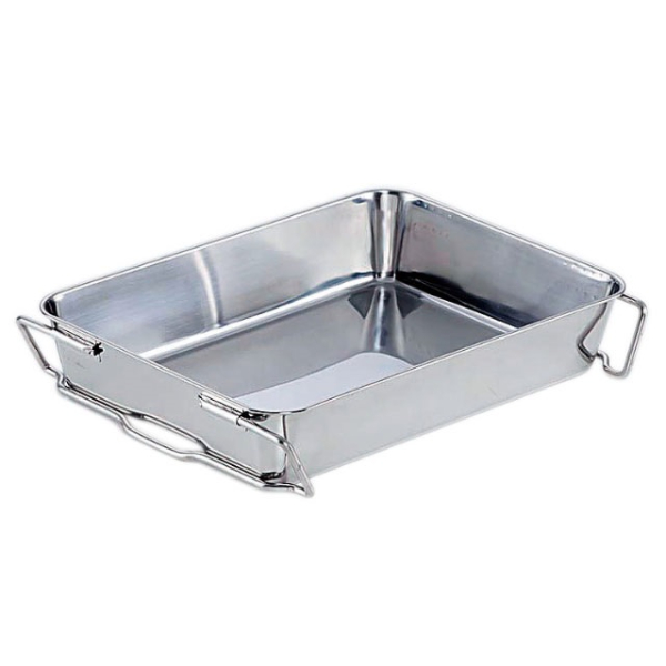 未使用時に保管する場合も、ハンドルを降ろしてスタッキングできます。サイズ:長さ582×幅421×高さ112mm、(底寸法)長さ500×幅340mm、板厚0.8mm材質:SUS304(18-8ステンレス)容量:22.4L長さ582×幅421×高さ112mm、(底寸法)長さ500×幅340mm、板厚0.8mm
