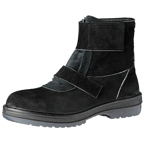 熱に強いゴム底と火の粉が付着しても表面の焦げ付きが気になりにくいベロア革を採用。床から熱が伝わりにくい靴底意匠により熱場作業を可能にする安全靴です。