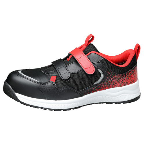 ●現場のハードな動きでも靴内で足がブレにくい「アクティブセフティ」シリーズ。足幅EEEのブラック/レッド、26.5cmです。