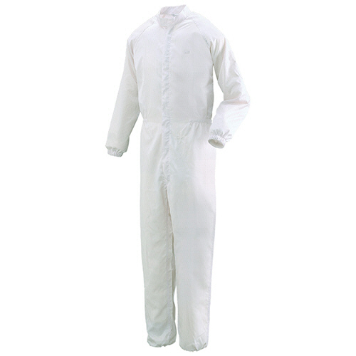 ●生地自体からの発塵を最小限に抑えます。ホワイト、Sサイズのクリーンスーツです。