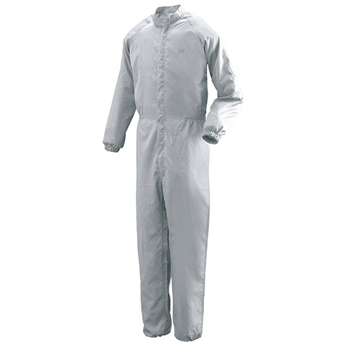 ●生地自体からの発塵を最小限に抑えます。グレー、5Lサイズのクリーンスーツです。