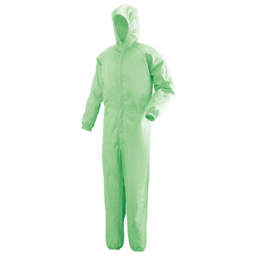静電気の帯電を防ぎ、ゴミやホコリのユニフォーム吸着を防ぎます。発塵を極限まで抑えた素材を使用。フード一体型でクリーンルームにも。