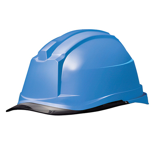 ●αライナー・クリアバイザー付PC製ヘルメット。色は帽体:ブルー、バイザー:スモークです。