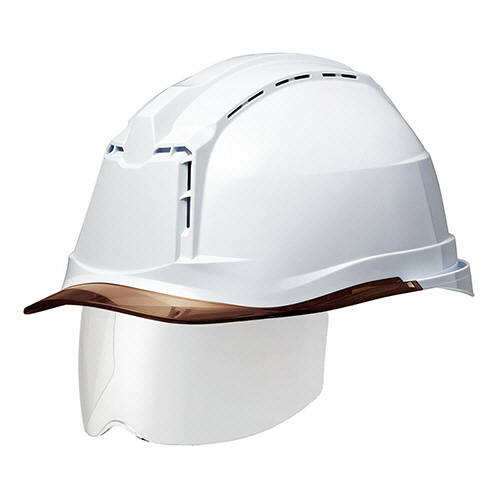 PC製ヘルメット(αライナー・クリアバイザー・シールド面・通気孔) ホワイト/ブラウン 1個