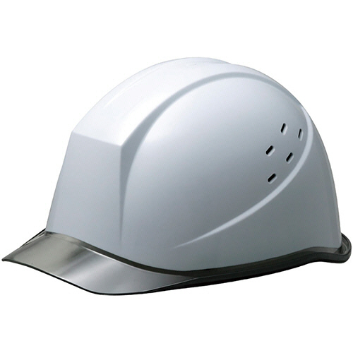 ●クリアバイザー・通気孔付PC製ヘルメット。色は帽体:ホワイト、バイザー:スモークです。