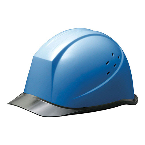 ●クリアバイザー・通気孔付PC製ヘルメット。色は帽体:ブルー、バイザー:スモークです。