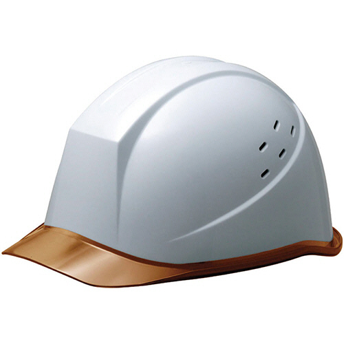 ●クリアバイザー・通気孔付PC製ヘルメット。色は帽体:ホワイト、バイザー:ブラウンです。