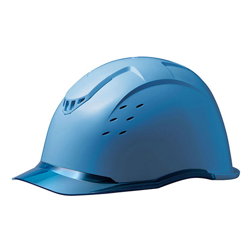 ●KP(衝撃吸収ライナー)・クリアバイザー・通気孔付PC製ヘルメット。色は帽体・バイザー:ブルーです。