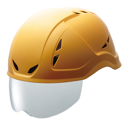 ●シールド面・通気孔付軽作業帽、色はイエローです。