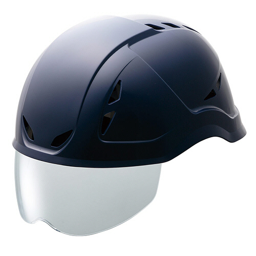 ●シールド面・通気孔付軽作業帽、色はネイビーです。
