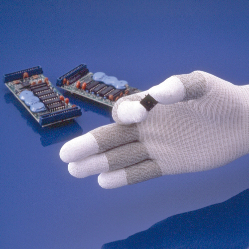 指全体を導電糸のみで編み上げた静電気対策用指先スベリ止め手袋[簡易包装]