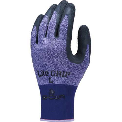 ●色はパープル、Lサイズの天然ゴム背抜き手袋です。