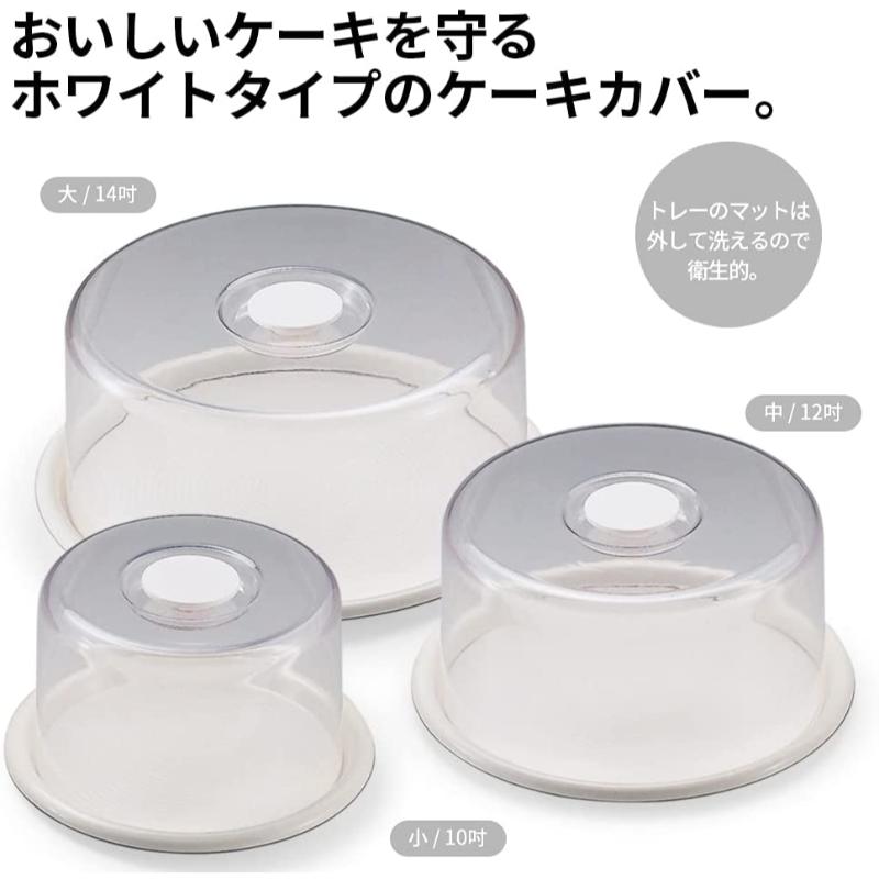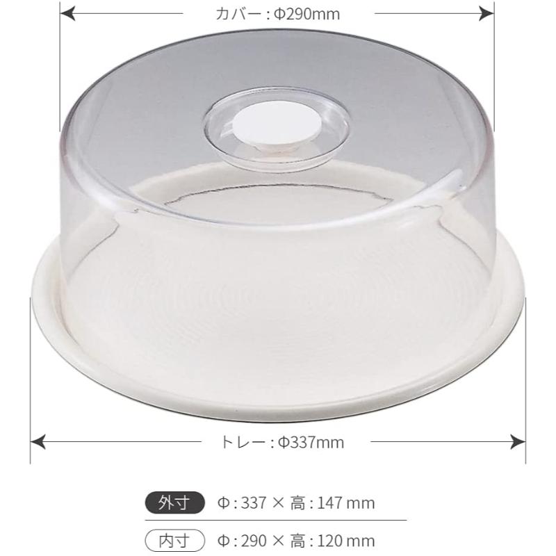 デコレーションしたケーキ等を乾燥やホコリから守ります。中が見える透明なアクリル製。サイズ:φ340×H147mm材質:[トレー・つまみ]ABS樹脂、[マット]EVA樹脂、[フード]耐衝撃性スチロール樹脂メーカー品番:334062φ340×147mm
