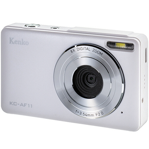 ●いつもポケットに入れて、日常の景色を気軽に撮れる軽量コンパクトな500万画素デジタルカメラ。カラーはホワイトです。