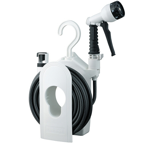 狭い場所での散水や、ベランダでの水やりに便利なハンガータイプのコンパクトリール。