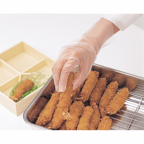 【食品衛生法適合】ポリエチレンは油、薬品などに強いため、化学薬品や食品加工に適した左右両用タイプの手袋です。