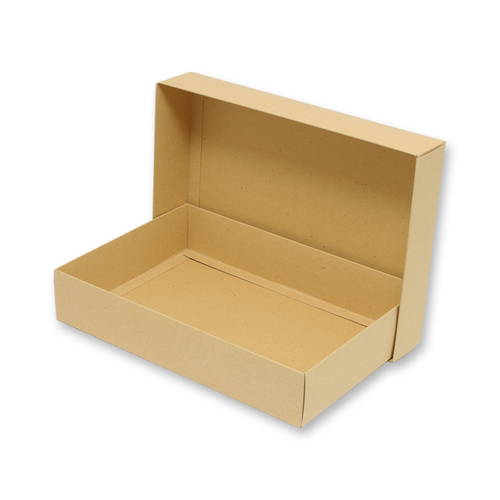 パッケージやギフト包装によく使用される形式の箱。地紋様の入ったクラフト仕様で、ナチュラルな風合いです。6枚組になったハンカチの梱包にピッタリなサイズ感となっています。パッケージ・ギフトラッピングにいかがでしょうか。