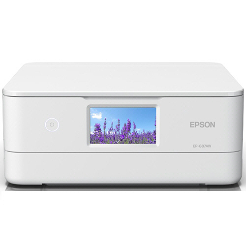 ●どんな空間にも映える本体デザイン「EP-887」。本体色はホワイト。マットで落ち着いた雰囲気を表現しました。