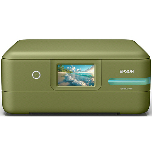 ●美しくなじむスタイリッシュなデザイン。エコタンク搭載の「EW-M757」。本体色はピスタチオグリーンです。