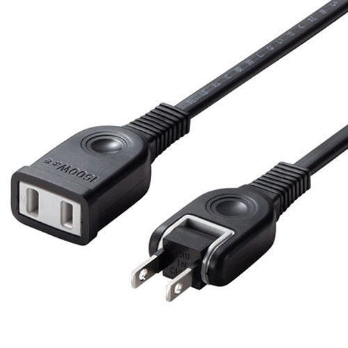●トラッキング火災を予防できる絶縁キャップ付きスイングプラグを採用した2P・1m・ブラックの電源延長コードです。