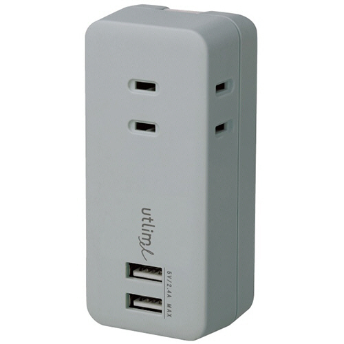 ●2つのUSBポートと3つのACコンセントで複数の機器を同時にサポートするコンセント。カラーはグレ―です。