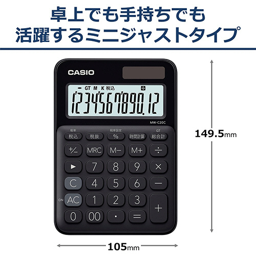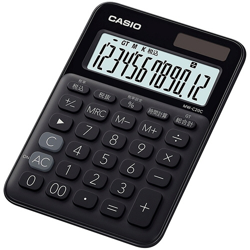 カラフル電卓 ミニジャストタイプ 12桁 ブラック 1台