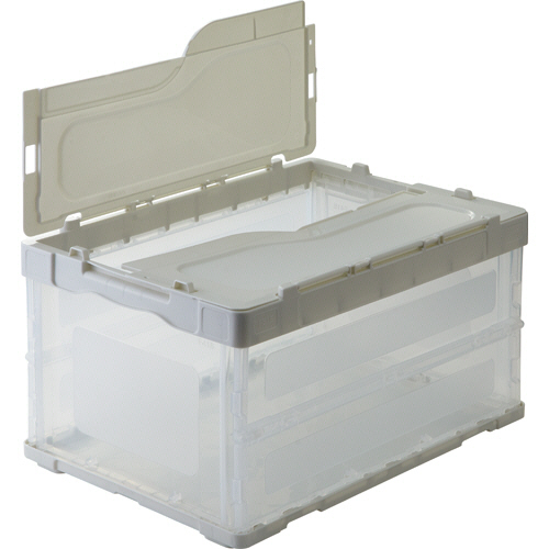 折りたたみコンテナ 軽量タイプ フタ一体型 40L ホワイト/透明 1台