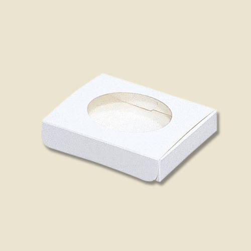 パッケージやギフト包装によく使われる形式で、蓋に窓枠が付いた箱。シンプルなホワイト仕様で、中の品物を美しく見せます。小物や雑貨のパッケージ・ギフトラッピングにいかがでしょうか。