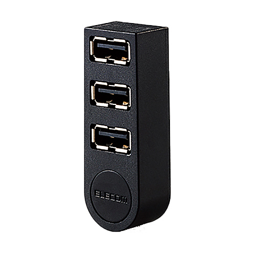 ●ケーブルがなくノートパソコンにそのまま直挿しできる、スタイリッシュな3ポートUSBハブ。カラーはブラックです。