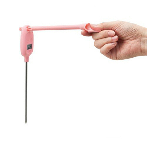 金串状の温度計は、液体はもちろん、お肉などの低温調理にも重宝します。ローストビーフやチョコレートの中の温度もはかれます。