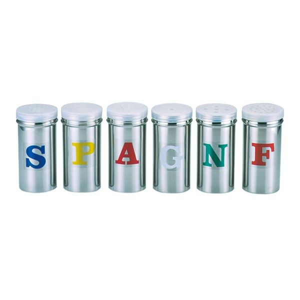 側面にアルファベットがあり、中身を分かりやすくします。たっぷり入るロングタイプです。サイズ:直径φ55×高さ115mm材質:18-8ステンレス直径φ55×高さ115mm