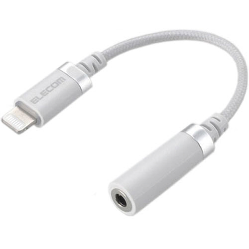 ●ナイロンメッシュケーブルと高密度配線構造で断線に強い、Lightningコネクタをφ3.5mmイヤホンジャックに変換できる変換ケーブルのホワイトです。