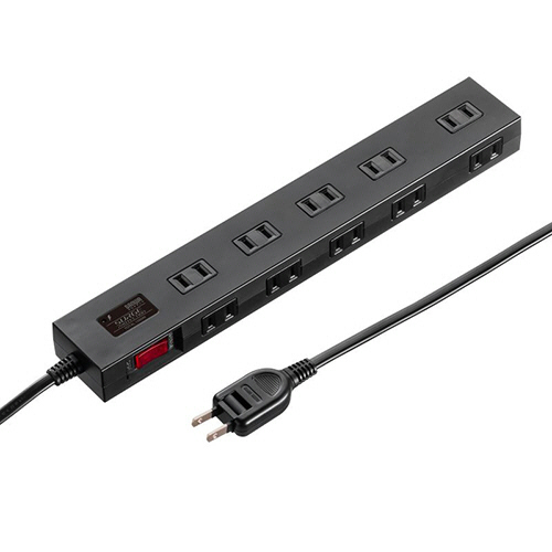 ●小型ACアダプタが差し込める(差込口ピッチ45mm)10個口、ブラックの電源タップ。ケーブル長さは5mです。