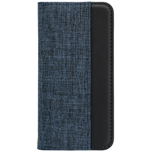 ●ファブリック×PUレザーの手帳型ケース。カラーはネイビー×ブラックです。